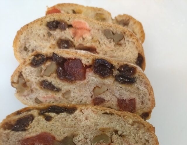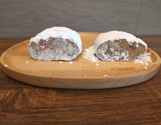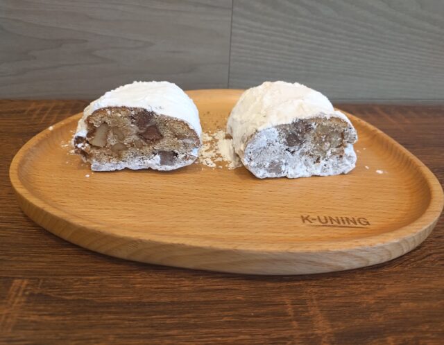当店ではクリスマスの時期だけでなく、1年を通じてシュトーレンを販売しています。季節の食材を使用し、毎月フレーバーが変わる大人気のシュトーレンは、時間の経過とともに味が馴染み、風味が変わるのが特徴です。ぜひ、ご家族でお楽しみください。