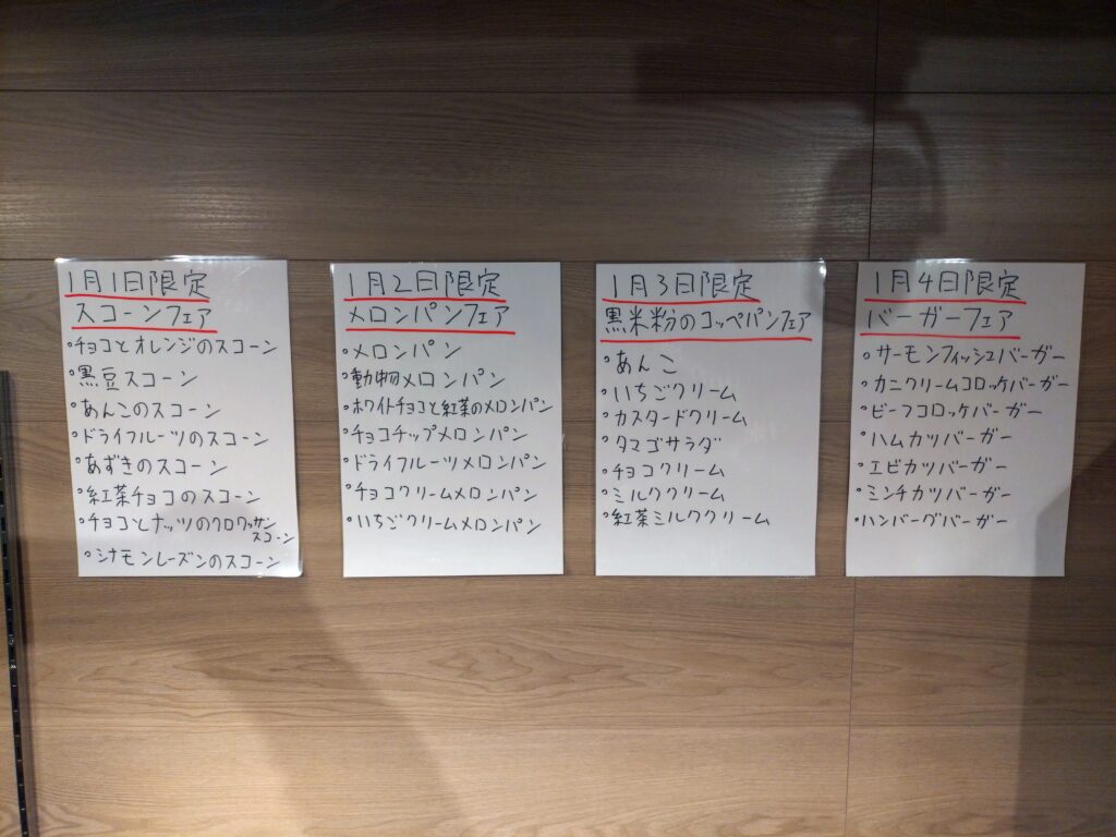 CONTENTS コンテンツ 2025.12.19 お正月イベント ブログ 本日はお正月イベントのご紹介です。今回は4日間開催します。1月の新商品はシュトーレンとスコーンは1日からで、残りは6日(火)から販売します。 お正月のお休みは月曜日のみです。もう少ししたら組合から年末年始の用紙送ってくると思うので、お待ちください。 一覧へ戻る