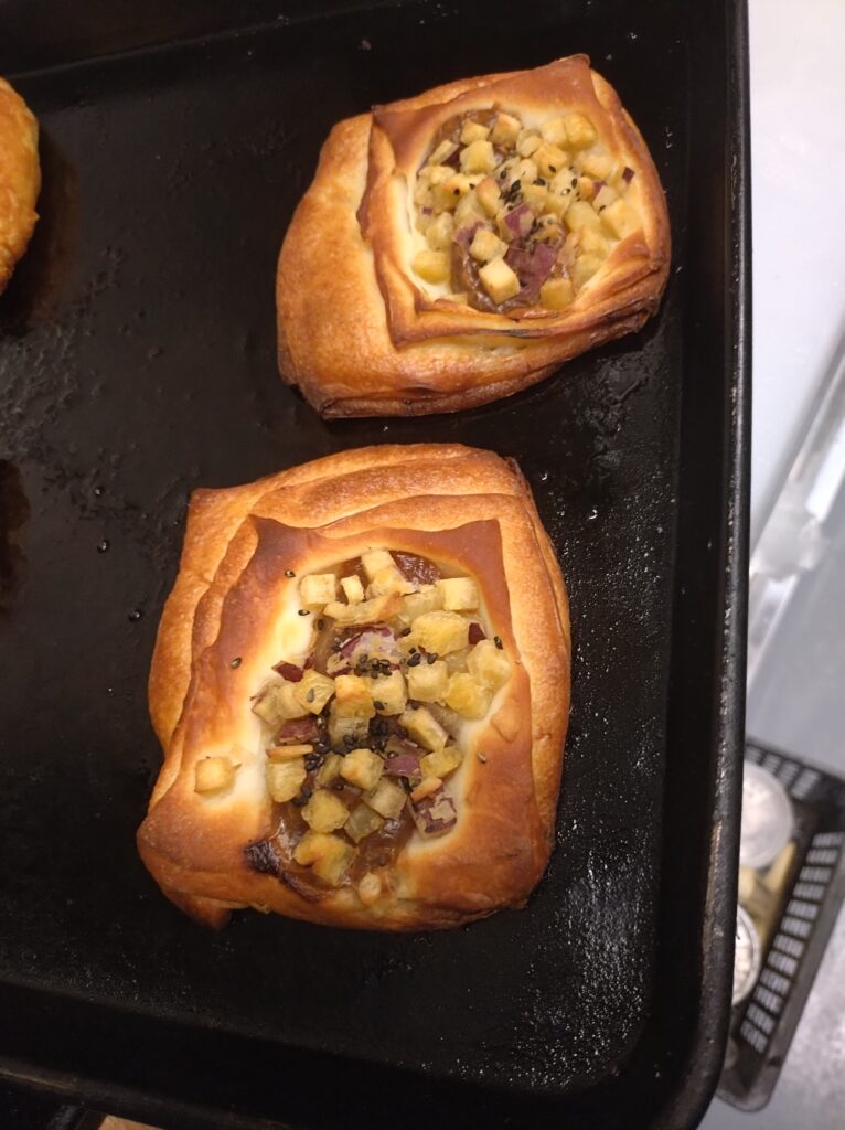 CONTENTS コンテンツ 2025.10.05 さつまいもデニッシュ ブログ 本日は10月の新商品さつまいもデニッシュ(税込220円)のご紹介です。クロワッサン生地にキャラメルクリームをしぼり、ダイスさつまいも、黒ごまをかけて焼き上げました。 一覧へ戻る