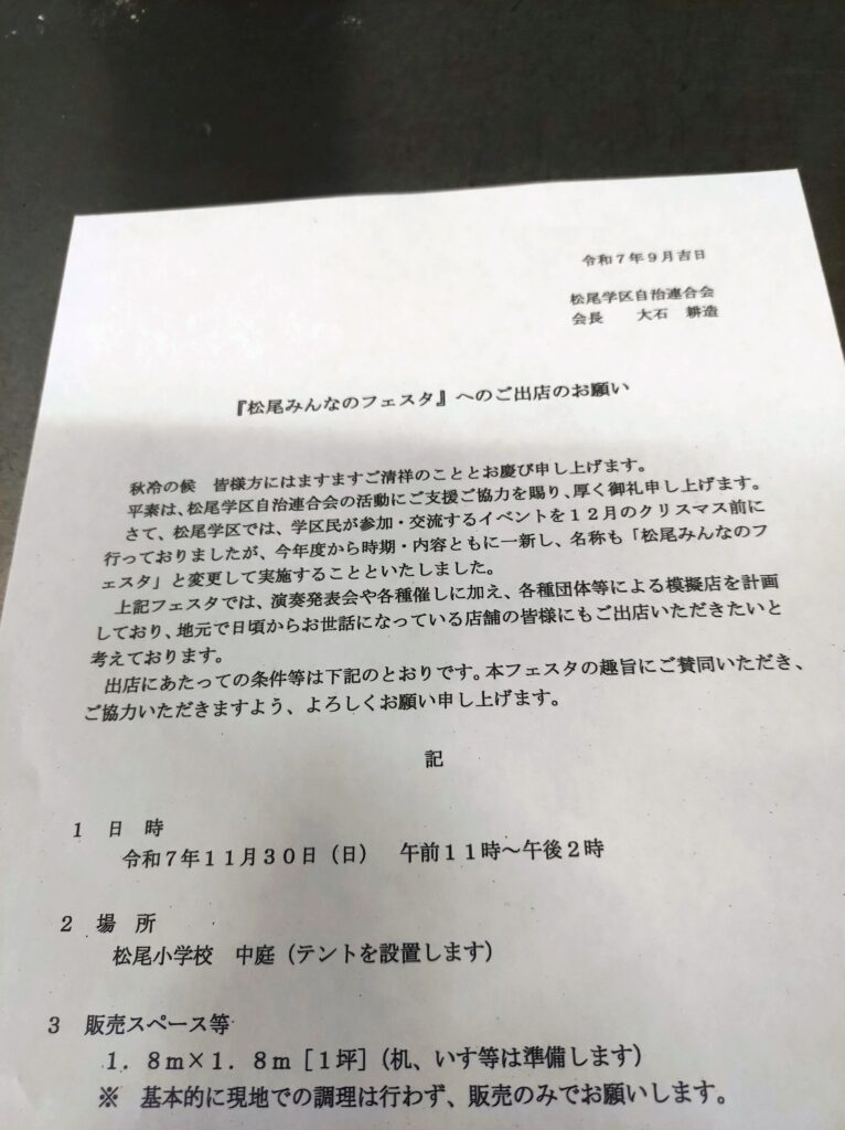 1人でやってるんで、今まではこういったイベントは殆どお断りしてたんですが、今回は徒歩で行ける場所で、保健所関係も済んでるみたいやし、1日丸々ではないので、前向きに検討しようと思ってました。