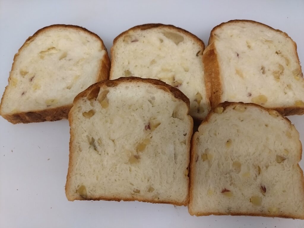 CONTENTS コンテンツ 2025.10.09 キャラメルさつまいも食パン ブログ 本日は10月の新商品キャラメルさつまいも食パン(税込430円)のご紹介です。モチモチの食パン生地に練乳、バター、キャラメルソースを加えたさつまいもダイスを練り込んで焼き上げました。 一覧へ戻る