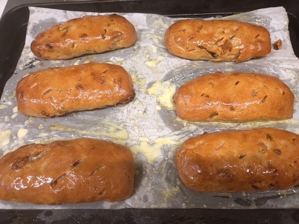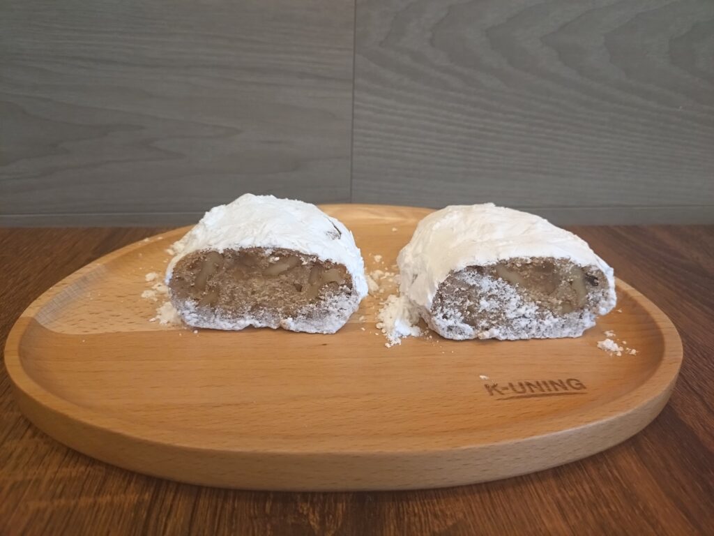 CONTENTS コンテンツ 2025.12.09 クリスマスシュトーレン ブログ 本日は12月新商品クリスマスシュトーレンのご紹介です。全粒粉がはいった生地に6種類のドライフルーツ、クルミ、アーモンド、ホワイトチョコを練り込みました。一番小さいサイズ以外は前日の午前中までに予約となってますので、よろしくお願いします。価格は去年と同じで何とか頑張ります! 一覧へ戻る