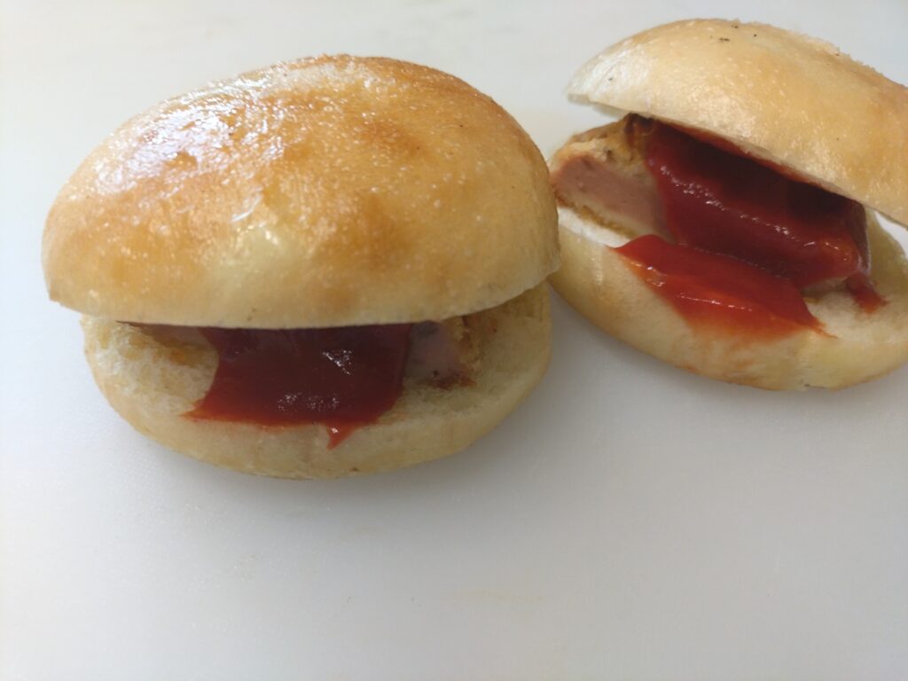 CONTENTS コンテンツ 2026.04.09 ハムカツバーガー ブログ 本日は4月の新商品ハムカツバーガー(税込200円)のご紹介です。人気の塩バターブレッドにハムカツを挟み、ケチャップを付けました。 一覧へ戻る