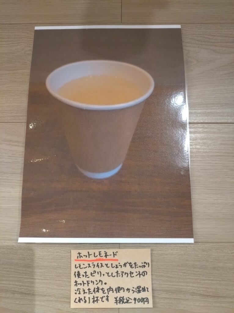 CONTENTS コンテンツ 2025.12.05 ホットレモネード ブログ 11月から始めてる新商品のホットレモネード。寒くなってきたので、今年から始めてみました。結構確りとしょうがの味と香りがします。寒い時は温かい飲み物のんで、この冬も乗り切りましょう! あ、未だにアイスドリンクやってますが、意外と外国人観光客に人気で、ホットよりよく出です。まだしばらく販売中です。 一覧へ戻る
