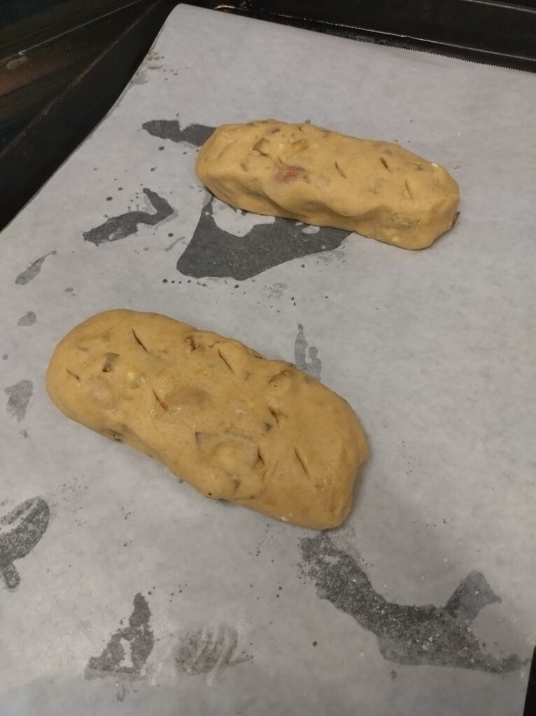 只今明日からの新商品キャラメルさつまいもとナッツのシュトーレン作ってます。